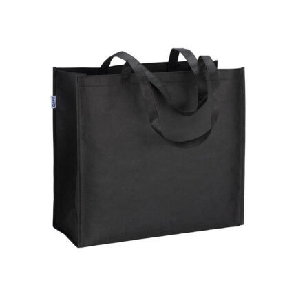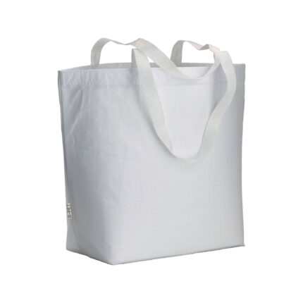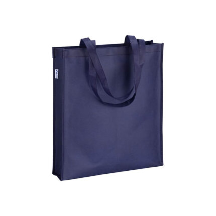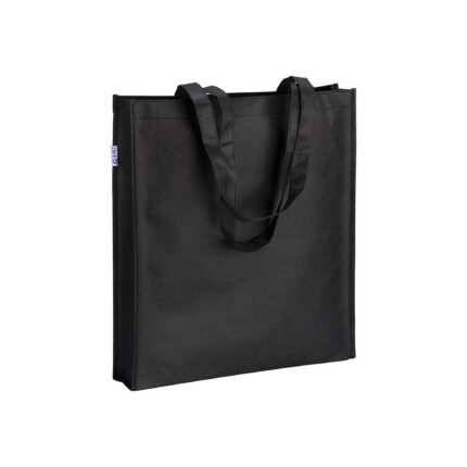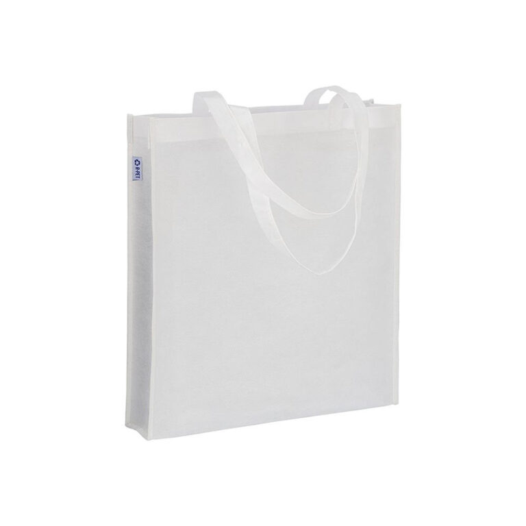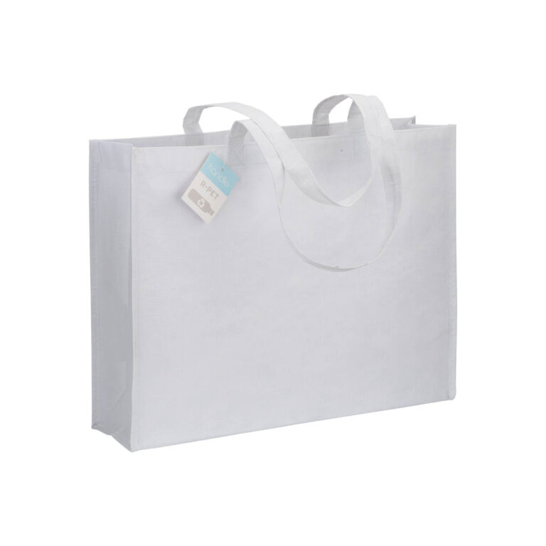 Shopper in R-PET laminato con soffietto alla base – manici lunghi in poliestere