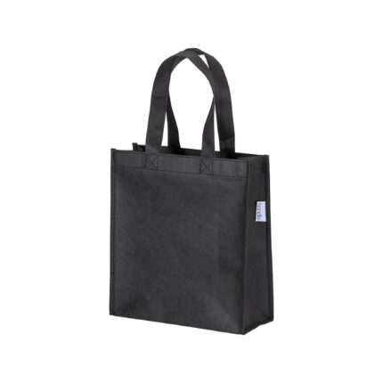 Shopper mini con soffietto in R-pet 80 g/m2 con soffietto, manici corti