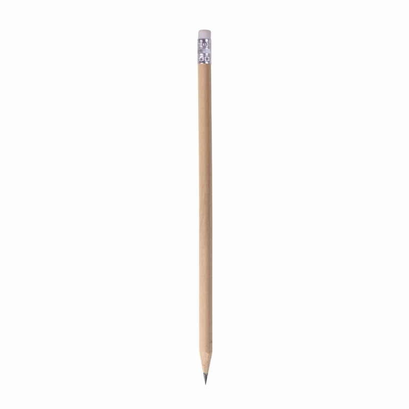 Matita HB in legno naturale con mina in grafite, con gommino colorato