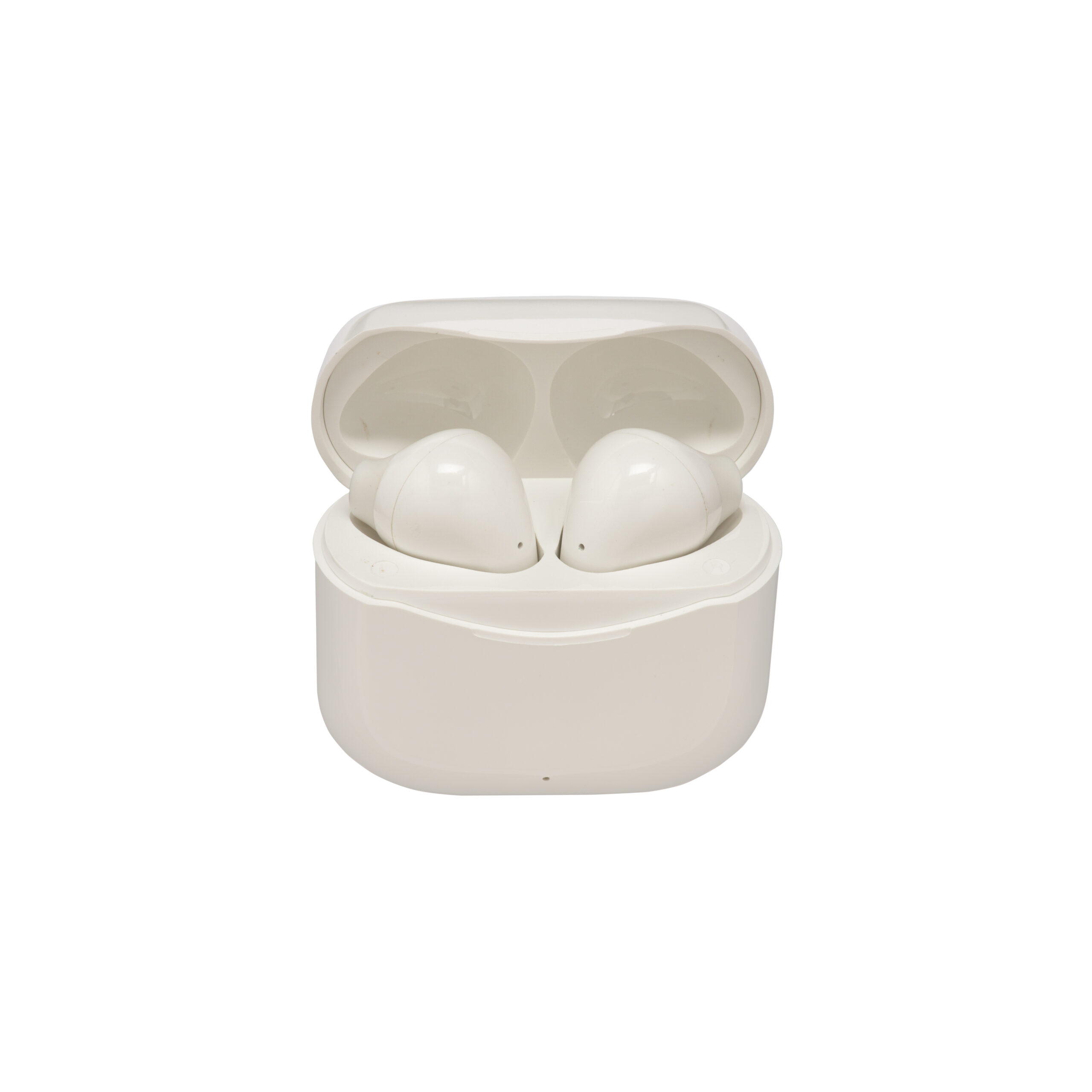 Auricolari bluetooth con scatola di ricarica e cavo di ricarica micro USB incluso.