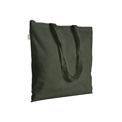 Borsa shopper a tinta unita in cotone riciclato da 220 g/m2. Dotata di manici lunghi per un comodo trasporto a mano e a spalla. È certificata GRS (Global Recycled Standard)