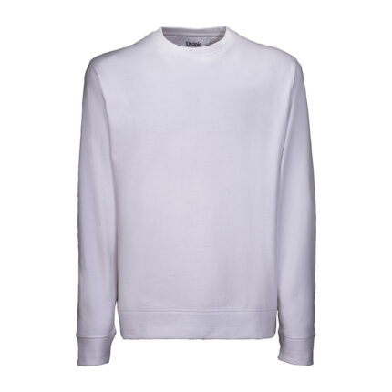 Felpa girocollo unisex in tessuto rigenerato da 280 g/m2 (60% cotone riciclato, 39% poliestere riciclato, 1% altre fibre). Felpata internamente, polsini e orlo inferiore a costine, rinforzo sul colletto, struttura con cuciture laterali
