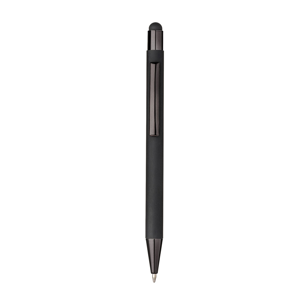 Penna a scatto in alluminio gommato. Clip e particolari metallizzati in tinta