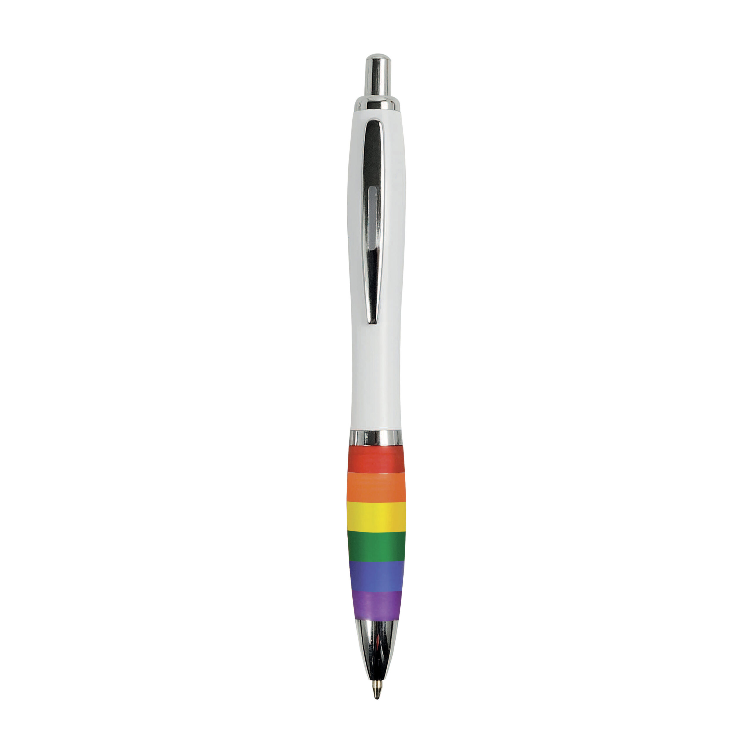 Penna a scatto in plastica ABS, con fusto bianco, impugnatura arcobaleno