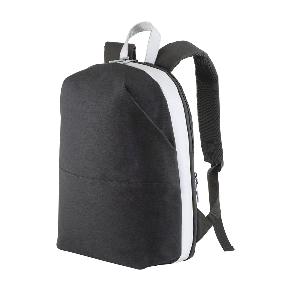 Zaino porta PC in Canvas con inserti in ecopelle ad alta visibilita. Compartimento imbottito per notebook. Schienale e spallacci imbottiti con materiale traspirante. Tasca posteriore antitaccheggio